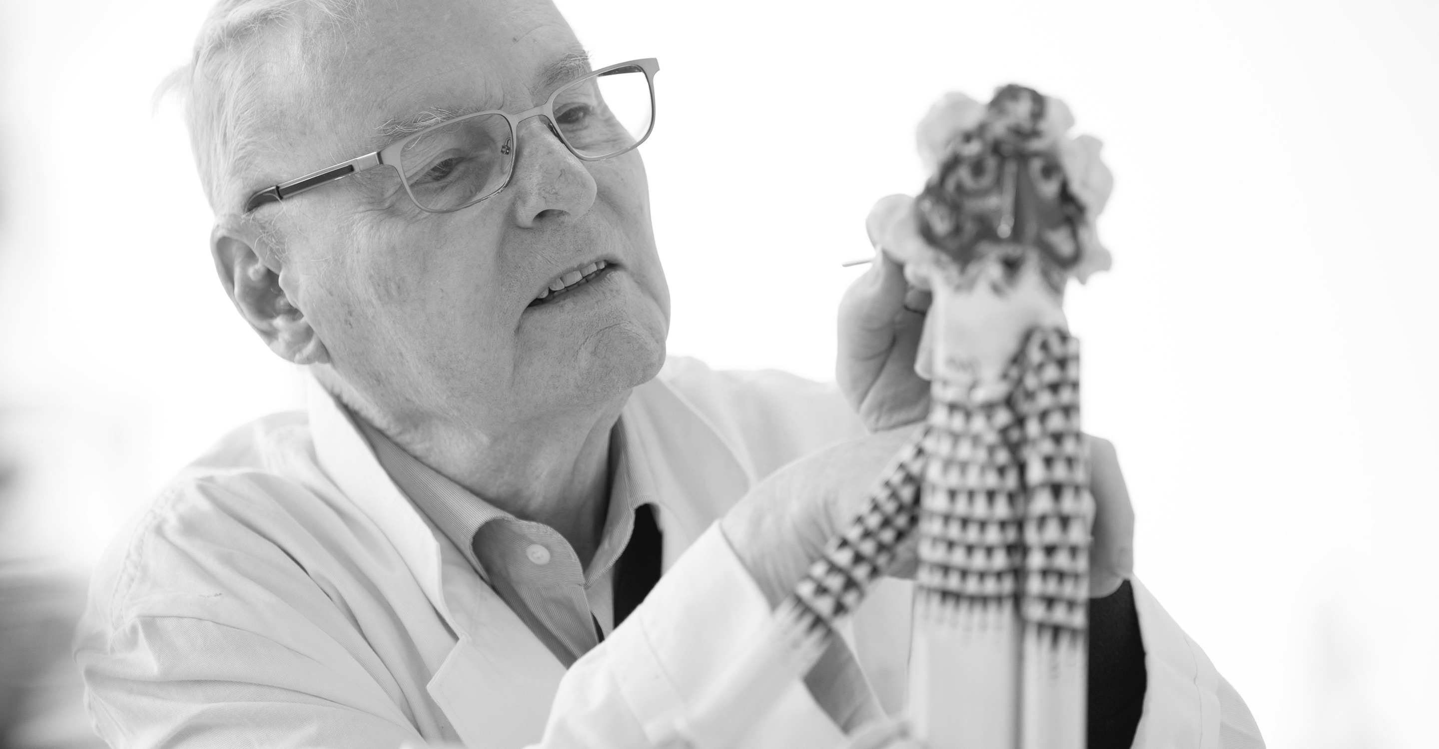 Prof. WernerProf. Heinz Werner (1928) war einer der wichtigsten Porzellanmaler des „Kollektiv Künstlerische Entwicklung“ der Manufaktur Meissen, zu dessen Gründerteam er selbst zusammen mit Ludwig Zepner und Peter Strang gehört. Auf den 1943 als Dekorgestalter an die Manufaktur berufenen Werner gehen über hundert Dekore zurück, die den Duktus der Gegenwart maßgeblich prägen. Darunter Höhepunkte wie „1001 Nacht“, „Sommernachtstraum“, „Blaue Orchidee auf Ast“ oder „Jägerlatein“. Werner inszeniert eine bewegungsreiche szenische Miniaturmalerei voller Phantasie und Lebensfreude, die von der orientalischen Märchenwelt wie von eigenen Reisen in Länder wie Japan, Finnland, Italien oder Hong Kong inspiriert ist. Dabei testet und perfektioniert er in seiner Zeit an der Manufaktur zusammen mit Horst Bretschneider verschiedenste neue Techniken in dem damals neuen Bereich der Wandgestaltung. -