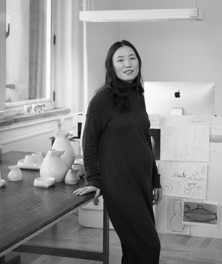Die Leitidee zur Entwicklung der „Antarctica“ Kollektion kam Zhuoyu Hou beim Anblick einer Pinguinfamilie im arktischem Eis – Papa, Mama, ein großer und ein kleiner Bruder. Die Silhouette der Pinguine verwandelte sie in ihren ersten Skizzen zu Krügen und Vasen. Die geschwungenen Kurven stehen dabei im Kontrast zu den kantigen Öffnungen und visualisieren den Bauch und Kopf der Pinguine. Ihre ersten Modelle aus Ton zeigten, wie spannungsvoll die organische Formensprache mit ihren Rundungen im Kontrast mit den eckigen, geradlinigen Elementen auf den Betrachter wirkten. Da Ton sehr flexibel und anpassungsfähig ist, konnte sie mit ihrer Arbeit nicht nur ein optisch ansprechendes Design schaffen, sondern auch direkt die Haptik berücksichtigen. Denn passen die Proportionen des Porzellans zur Handhabung, wird es häufiger benutzt. Dies wiederum, so Zhuoyu Hou, verstärkt die Schönheit der Designstücke. Mit diesem Anspruch hat die Designerin Krüge entwickelt, die vielseitig einsetzbar sind. Ob als Vase, Wasserkaraffe, Milchkännchen oder Sauciere, die Gefäße werden im modernen Interieur zu einem absoluten Blickfang. Um die Pinguin-Vasen herum, entwickelte Zhuoyu Hou eine ganze Landschaft. So wurden aus Eisschollen und Eisbergen verschiedene Schalen, Kerzenhalter und Becher. Allen Objekten schenkte sie eine harmonisch reduzierte Ästhetik – ganz im Sinne des puristischen Lebensstiles.