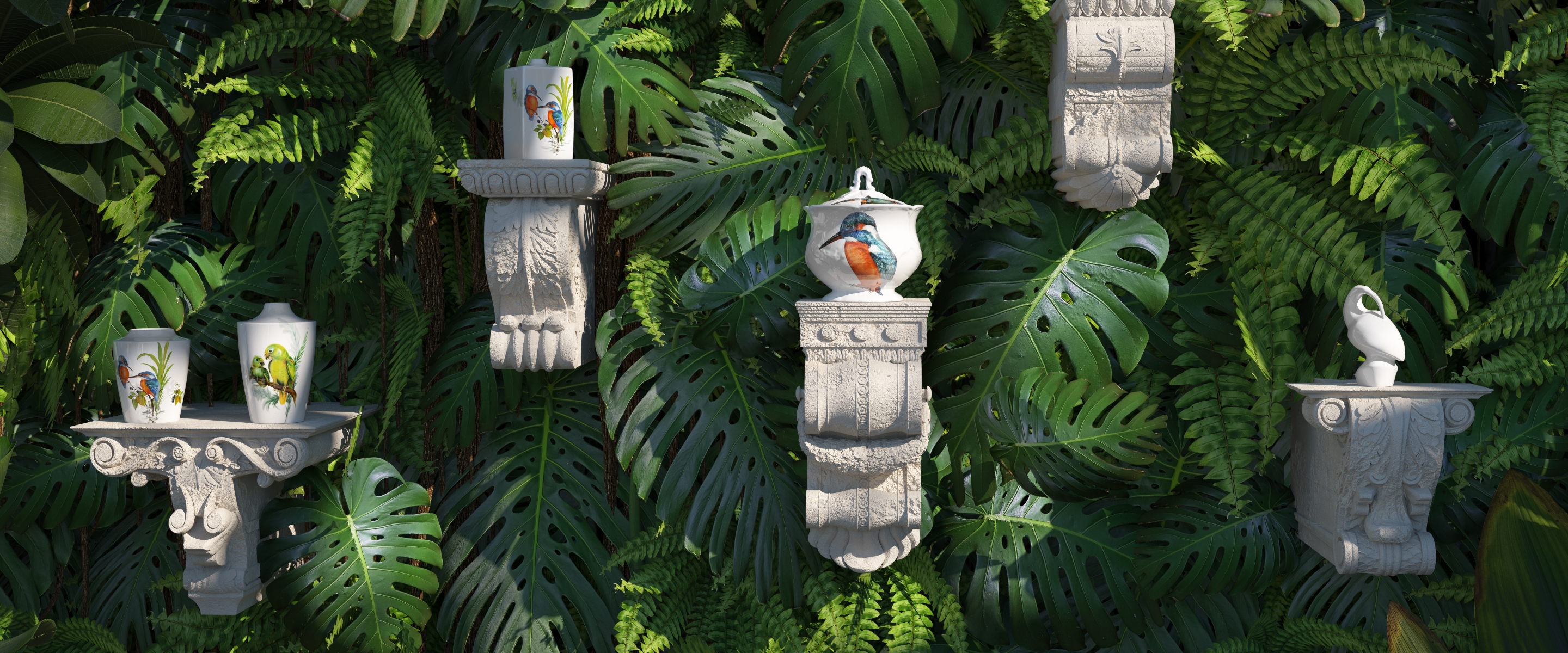 Nutzen Sie die Schönheiten der Natur, die in einem handgemalten Dekor auf weißem Gold oder in plastischen Figuren verewigt sind, um Ihr Interieur gekonnt in Szene zu setzen.