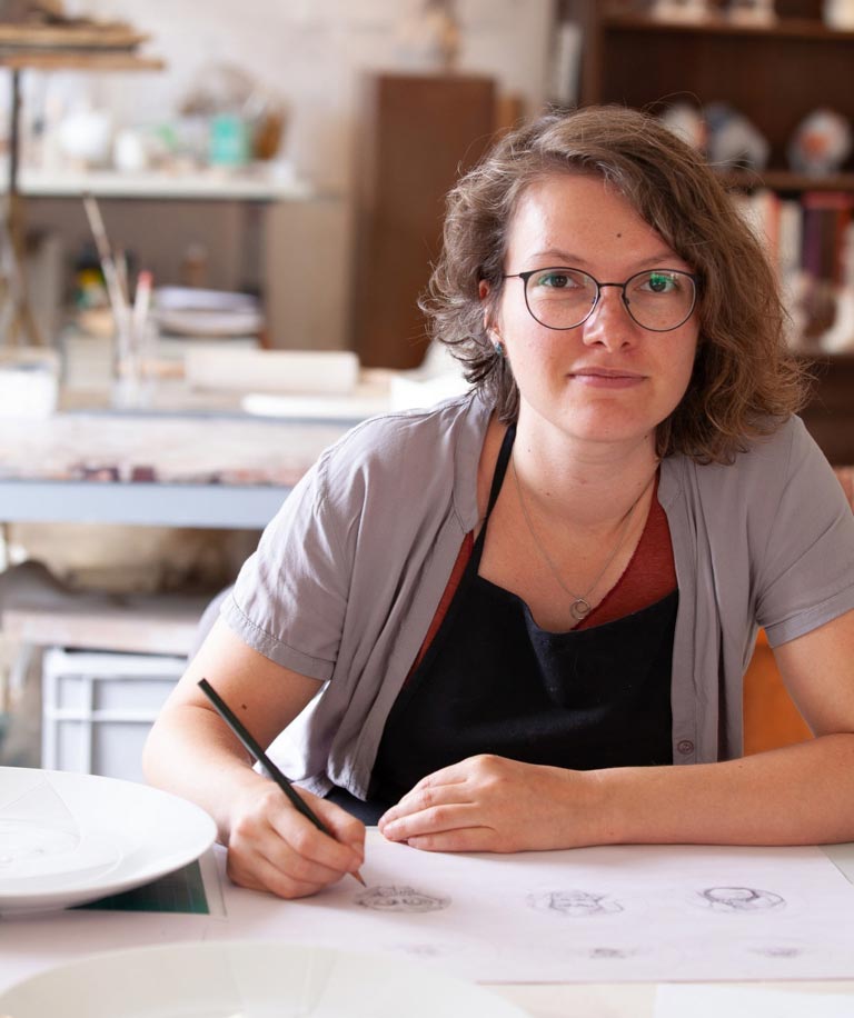 Die Leidenschaft zum Experimentieren hat zwei Meissener Künstler zusammengeführt– Horst Gottschaldt (geb. 1949) und Detlef Ritter (geb. 1961) schufen mit Ausdauer, Liebe für den Werkstoff und gegenseitigem Vertrauen neue Kristallwelten für die Manufaktur. Das Ergebnis: Eine wundervolle Symbiose von technischer Kristallglasur und handwerklich perfekter Porzellanmalerei, deren faszinierende Effekte nach mehrmonatigen Versuchsreihen im Labor entstanden sind. Nur sehr wenige Handwerker stellen sich dieser anspruchsvollen, oft von Misserfolgen begleiteten Herausforderung. Als Grundlage verwendete der Künstler Horst Gottschaldt Porzellanplatten, auf denen er unterschiedliche pastöse Mischungen aus diversen Porzellanrohstoffen, mineralogischen Oxiden und Carbonaten auftrug. Je nach Farbwunsch werden die Rohstoffe nach unterschiedlichen Rezepturen gemischt. Nach einem speziellen langen Brand bis ca. 1300°C zeigt erst das Öffnen der Ofentür das Ergebnis schließlich bleiben Kristallbildungen in Form, Größe und Vielfalt immer ein Zufallsprodukt. Hier haben sich die Kristalle sehr groß und einmalig ausgebildet und ein amorphes Bild ohne feste Ordnung und Struktur entstehen lassen.