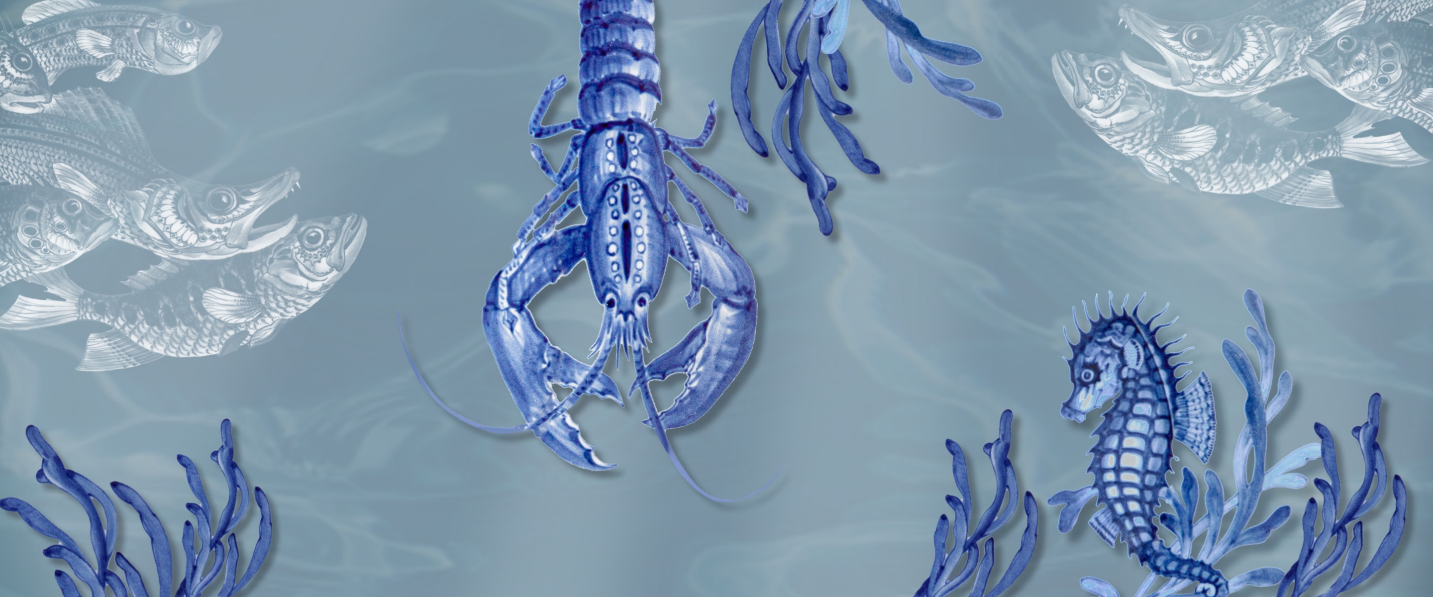 „Wie von sanften Wellen und einer Meeresbrise geleitet, fangen die fließenden Pinselstriche der maritimen Dekore eine faszinierende Unterwasserwelt auf Tellern, Vasen und Gefäßen in leuchtender Blaumalerei ein und lassen maritim sommerliches Ambiente im eigenen Interieur einziehen.“