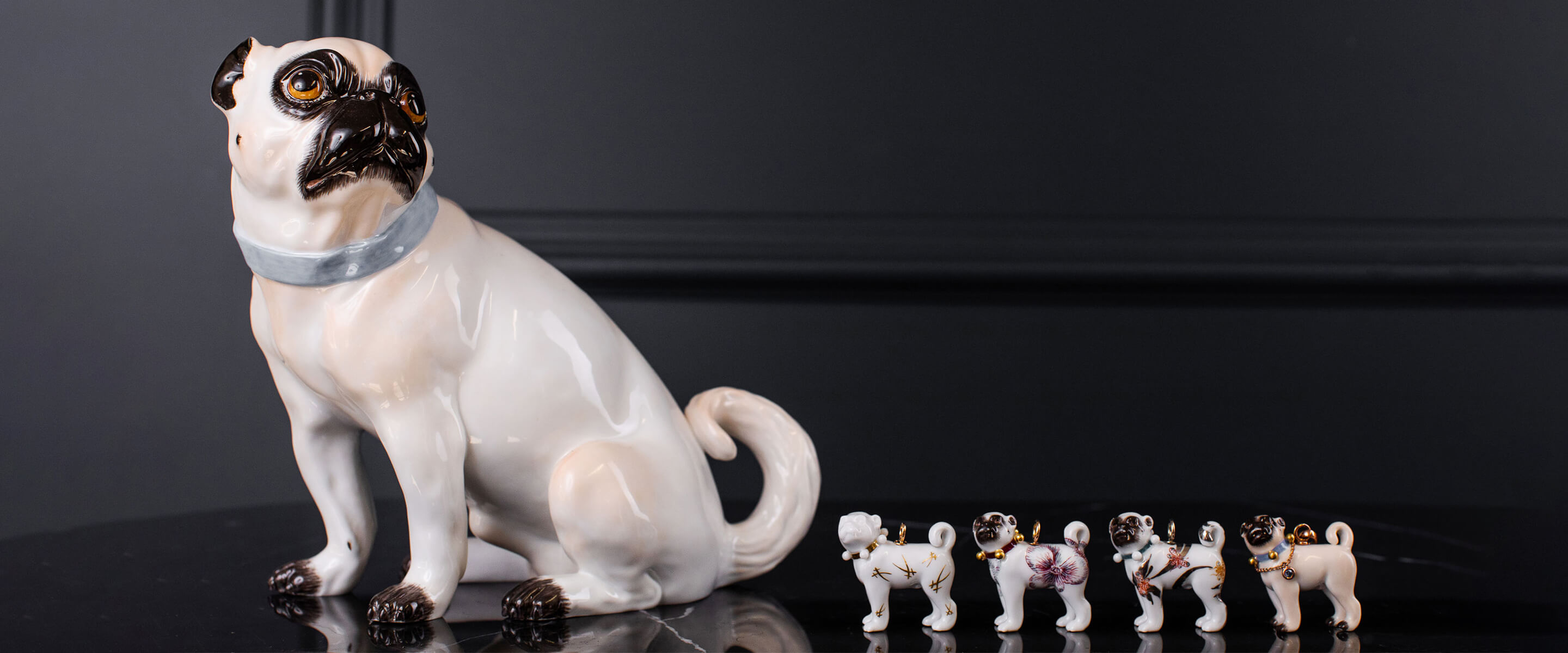 Bei MEISSEN hat der Mops eine lange Tradition. Bis heute ist die Begeisterung für diese Hunderasse ungebrochen, weshalb wir den beliebten Haustieren eine eigene Tieranhänger-Kollektion mit über sechzig verschiedenen Varianten gewidmet haben. Basierend auf der Originalform aus dem 18. Jahrhundert werden die zahlreichen Dekore der verschiedenen Varianten des Mops-Anhängers einzeln mit viel Liebe handbemalt. So ist jedes Stück nicht nur perfekt als beeindruckend schöne Statement-Kette geeignet, sondern lässt sich auch wunderbar sammeln.
