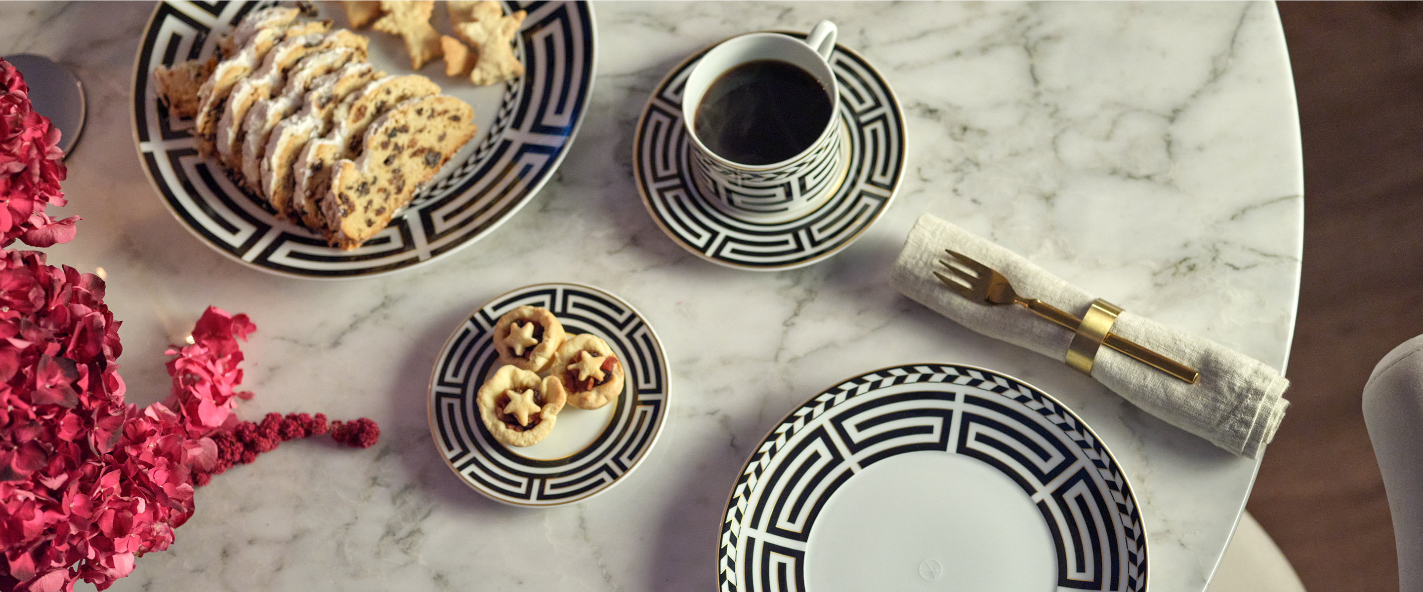 Nicht zum ersten Mal dienten die mäanderartigen Bodenmosaike der geschichtsträchtigen Albrechtsburg als Vorbild: Mit der Kollektion „Royal Meander“ ist dem MEISSEN Atelier eine moderne Interpretation und Weiterentwicklung des renommierten MEISSEN Dekors „Royal Palace“ gelungen. Die filigranen Kantenmuster am äußeren Rand der Tellerfahne greifen architektonische Elemente des Schlosses auf und tragen die DNA von MEISSEN durch eine zeitgenössische Designsprache in die Zukunft.