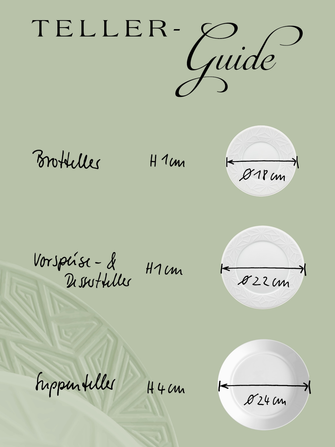 Der „VITRUV“ Brotteller hat einen Durchmesser von 18 cm und ist damit kleiner als der Frühstücksteller. Beim Menü steht der Brotteller von Beginn an auf der Tafel, links neben der Gabel, um den Gast nicht zu behindern. Meist bleibt dieser auch bis zum Ende auf dem Tisch stehen, insbesondere, wenn zum Essen Brot gereicht wird. Suppenteller