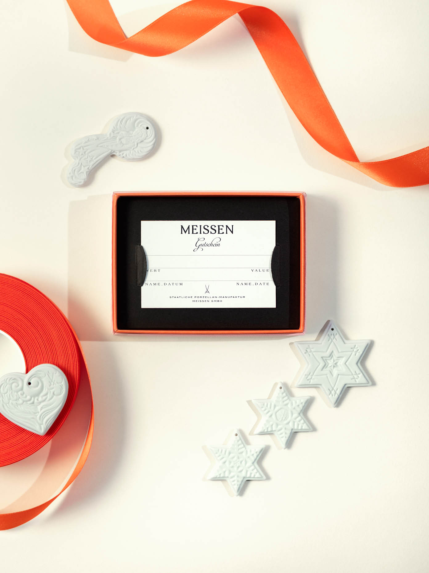 Darüber hinaus eignen sich die Biskuit-Anhänger hervorragend als exklusives Geschenk. Ob einzeln oder in Kombination mit anderen Produkten von MEISSEN, wie den Kugeln mit dem Peryton Dekor aus der diesjährigen Weihnachtskollektion oder den Biskuit Glocken mit unterschiedlichen Reliefmotiven – sie setzen ein luxuriöses Statement. Dank ihrer flachen Beschaffenheit eignen sich die edlen Schmuckanhänger ebenso als dekoratives Detail an einem Geschenk. So sorgen Sie garantiert für Begeisterung und verleihen jedem Präsent eine persönliche, elegante Note.