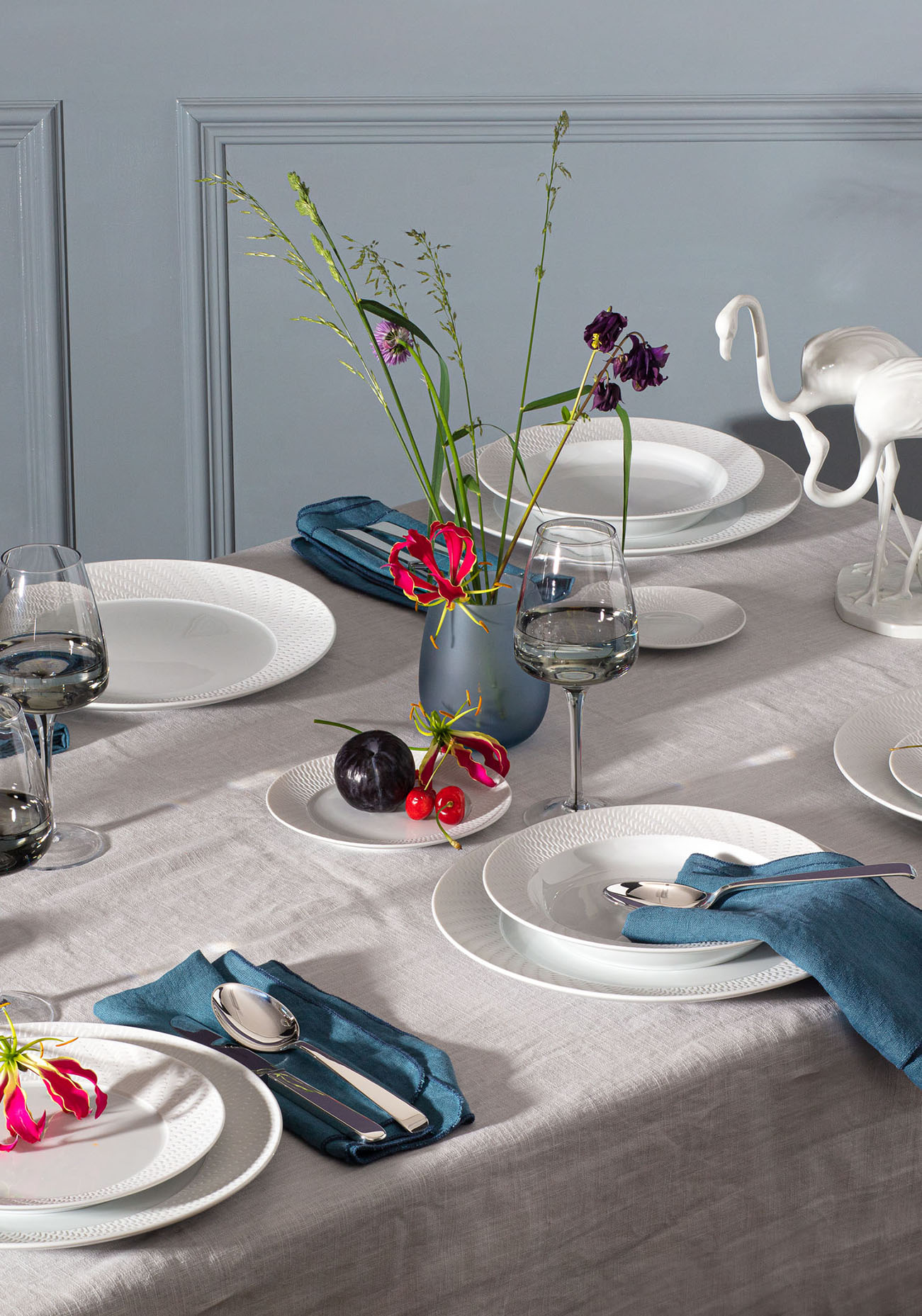 Die feine Linienstruktur des „Wellenspiel Relief“ auf der eleganten Form „N°41“ vereint so höchste Handwerkskunst und moderne Ästhetik. Die besondere Haptik des „N°41 Wellenspiel Relief“ – auch in Biskuit - lädt dazu ein, im Sinne des „Mix&Match“ verschiedenste Dekore der Kollektion „N°41“ zu kombinieren.