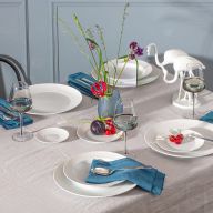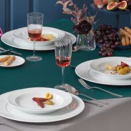 Ein tiefer Suppenteller entfaltet seine Wirkung besonders dann, wenn er Teil eines stimmigen Sets ist. Wer die gesamte Auswahl an eleganten Tellern mitdenkt, kann Gänge so aufbauen, dass jeder Moment seine passende Form erhält. Ein feiner Brotteller bringt Ruhe an den Platz, ein klarer Platzteller setzt einen Rahmen, der den Tisch ordnet, und ein großzügiger Speiseteller gibt dem Hauptgang Weite. Dieses Stück übernimmt die Tiefe und hält die Komposition zusammen, ohne schwer zu wirken.