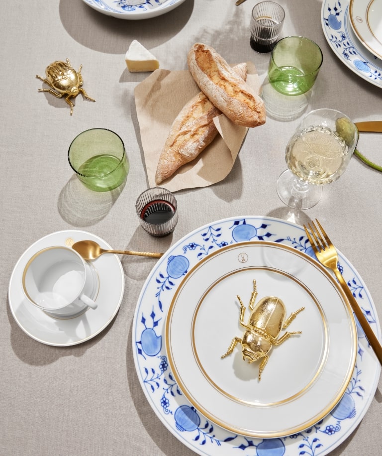 The tradition of flower painting at MEISSEN has continued to grow steadily to this day, undergoing numerous enrichments and refinements along the way. The porcelain painters of today are inspired not only by nature, but also by the artistic creativity of their time. One example is the new “Giant Bloom” collection with expansive flower paintings that unfold across the purist “MEISSEN® Cosmopolitan” form, underscoring the modern dining culture of our manufactory. With the filigree "Blue Orchid", one of Professor Heinz Werner's most popular designs from 1970 has been reinterpreted and transported into the modern age. The well-known illustrator Olaf Hajek also breaks down the boundaries between reality and imagination in his works for MEISSEN and creates his very own visual language of fantastic gardens and paradisiacal fairytale worlds with breathtaking floral elements.