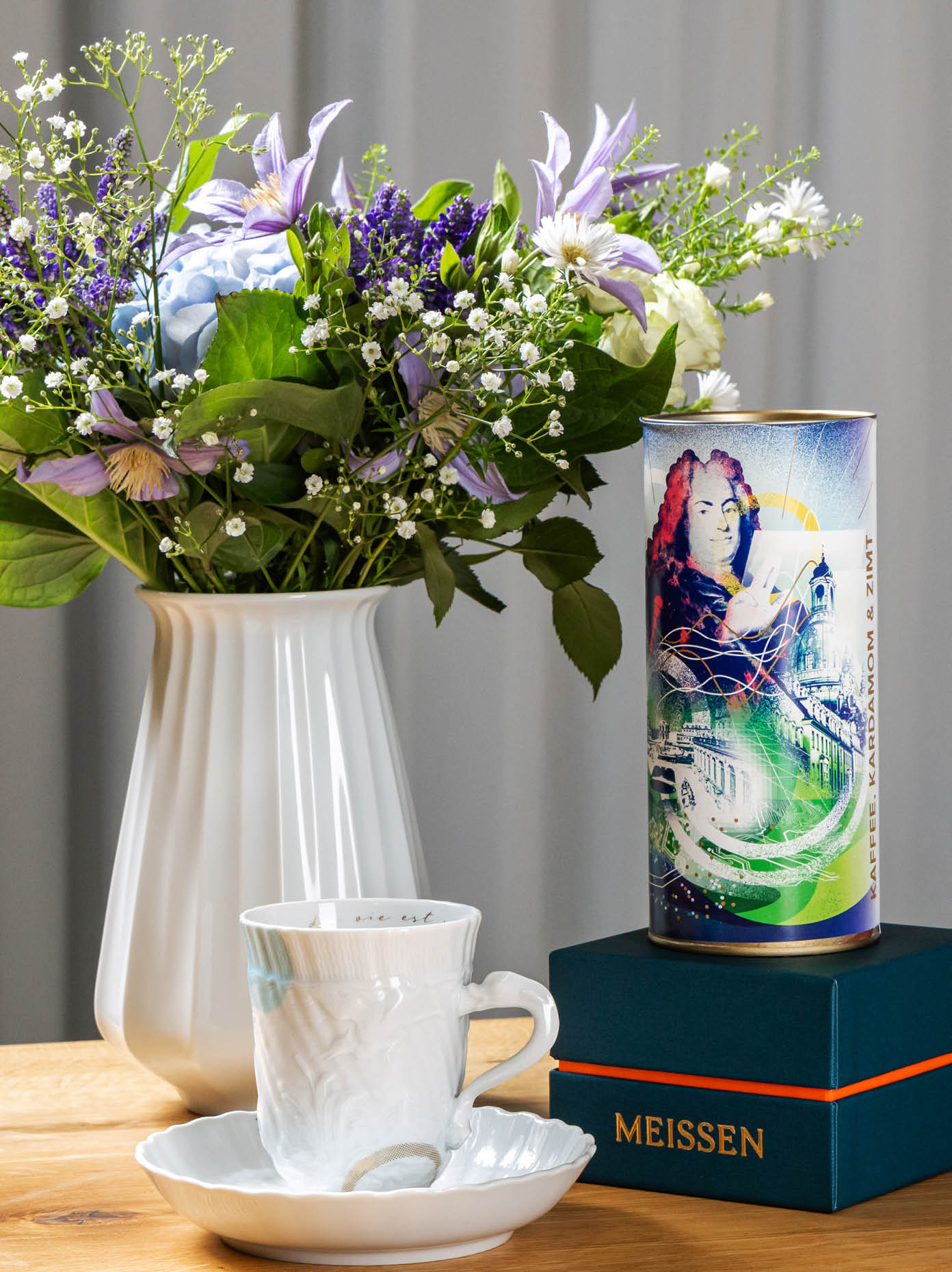 In keeping with the most beautiful time of the year, MEISSEN and Adoratio Schokoladenkunst present an exclusive gift set that will delight both porcelain lovers and chocolate connoisseurs. The set contains a coffee cup from MEISSEN's famous swan service, decorated with a specially designed Adoratio decoration, as well as the finest drinking chocolate from Adoratio. The swan service from MEISSEN is one of the manufactory's most important porcelain creations and is a prime example of 18th century Baroque art. It was originally designed in 1737 for the Saxon Prime Minister Heinrich Graf von Brühl and, with over 2,000 individual pieces, was one of the most sumptuous dinner services of its time. The swan service is particularly famous for its detailed reliefs depicting swans, aquatic plants and other natural motifs.