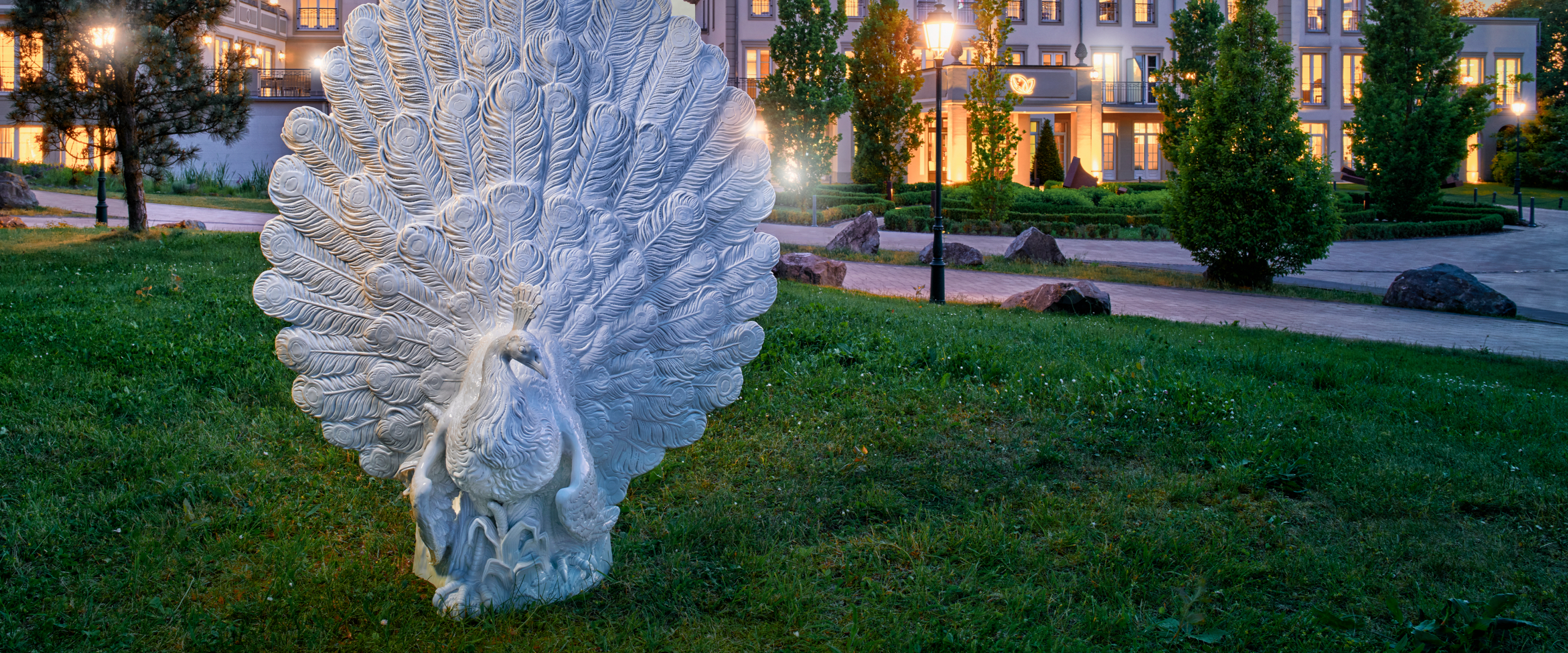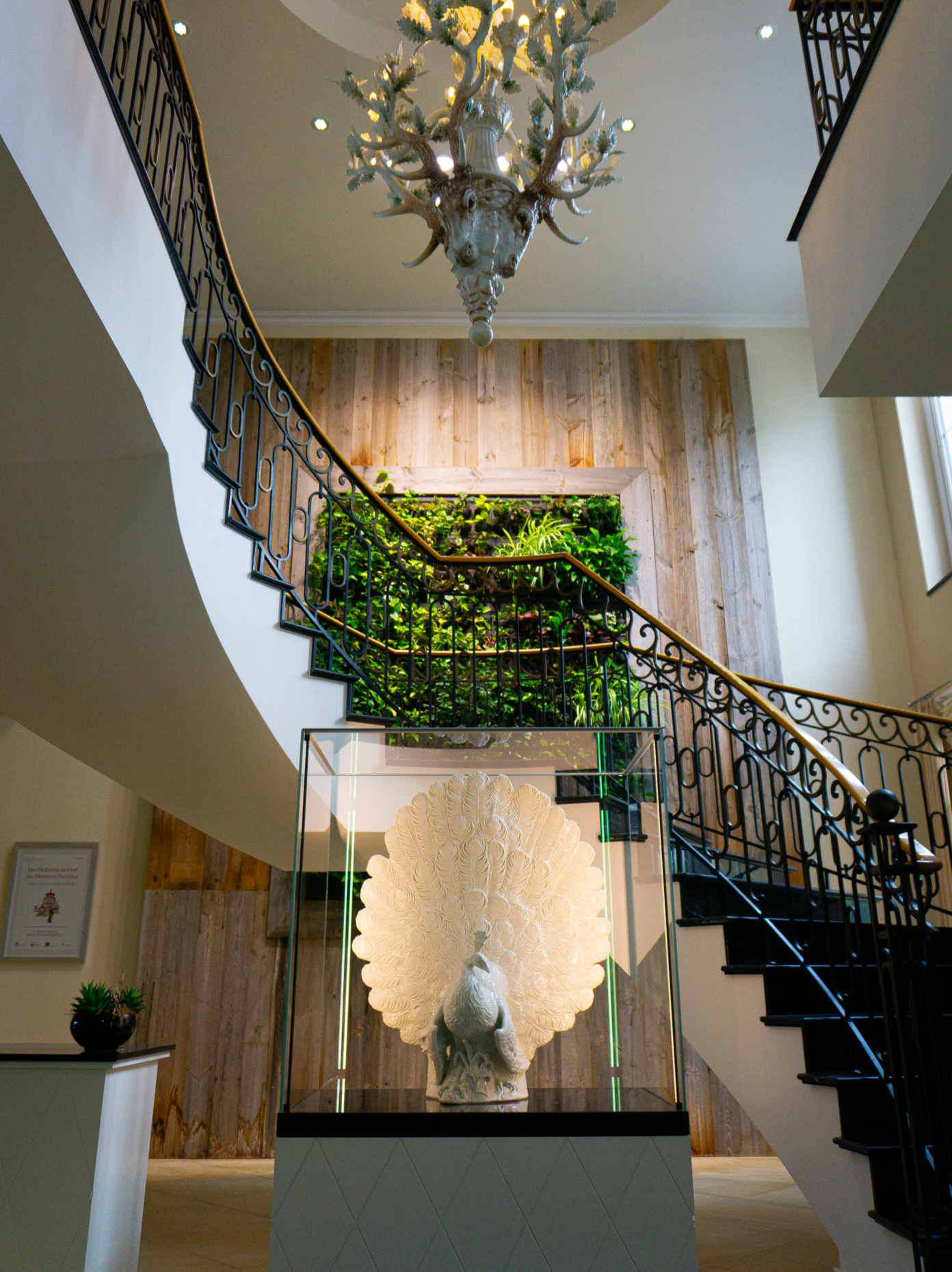 With the installation of the porcelain animal sculptures in the ultra-modern hotel complex, as well as the adaptation of the iconic works on fabulously beautiful wall installations, a bridge from tradition to modernity has been built in an impressive way. The figurines used, from the wheel-beating peacock, to the noble heron and the macaw, to the monkey with a snuffbox, are an important piece of MEISSEN history, dating back to the early 18th century. Many of these figurines are originals that were originally created by Johann Joachim Kaendler, one of MEISSEN's most important porcelain modelers. Hired by Augustus the Strong himself as a court sculptor and modeler at the porcelain manufactory, Kaendler began early on to make the king's dream of a castle made of pure porcelain come true. Thus, starting in 1731, he created numerous animal sculptures for the Japanese palace, which have now been recreated for the cooperation with the Nature Resort & Spa Schindelbruch.