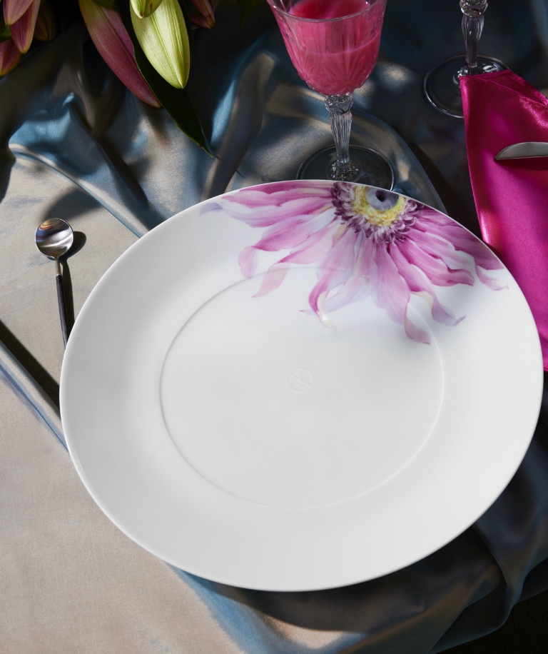 But traditional floral painting was not the only genre to be given a new lease of life and brought into the here and now. Two other contemporary interpretations this year were the cobalt blue painting of the world-famous "Onion Pattern" and the sweeping waves of our popular "Waves" collection, which were reinterpreted on the modern "N°41" shape.