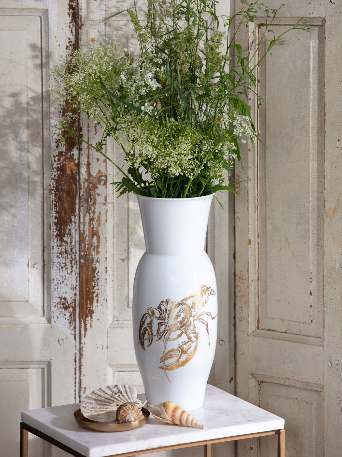 Our vases and vide-poches with enchanting motifs of oceanic fauna exude a magical vacation feeling and remind us of the incomparable beauty of seascapes. In combination with the radiant splendor of the porcelain surface, they will add a touch of elegance and delicate grace to your interior. To complete the maritime look, you can perfectly complement them with accessories such as beach chairs, shells, driftwood and sailboats.