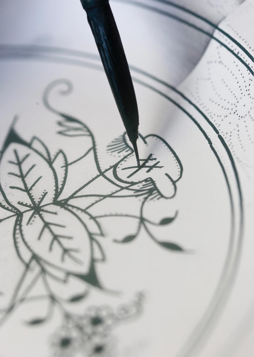 Biscuit FiringAlong with the composition of the porcelain paste, it was significant advances in firing technology that made the invention of porcelain possible in Meissen at the outset of the 18th century. Porcelain pieces spend hundreds of hours in the kilns at different temperatures – starting with their biscuit firing at around 950° C right after they have dried. It is this first firing that lends the pieces their structural integrity along with a porous surface. Any under-glaze decorations along with the “Crossed Swords” on all Meissen porcelains are applied directly onto the biscuit porcelain. -