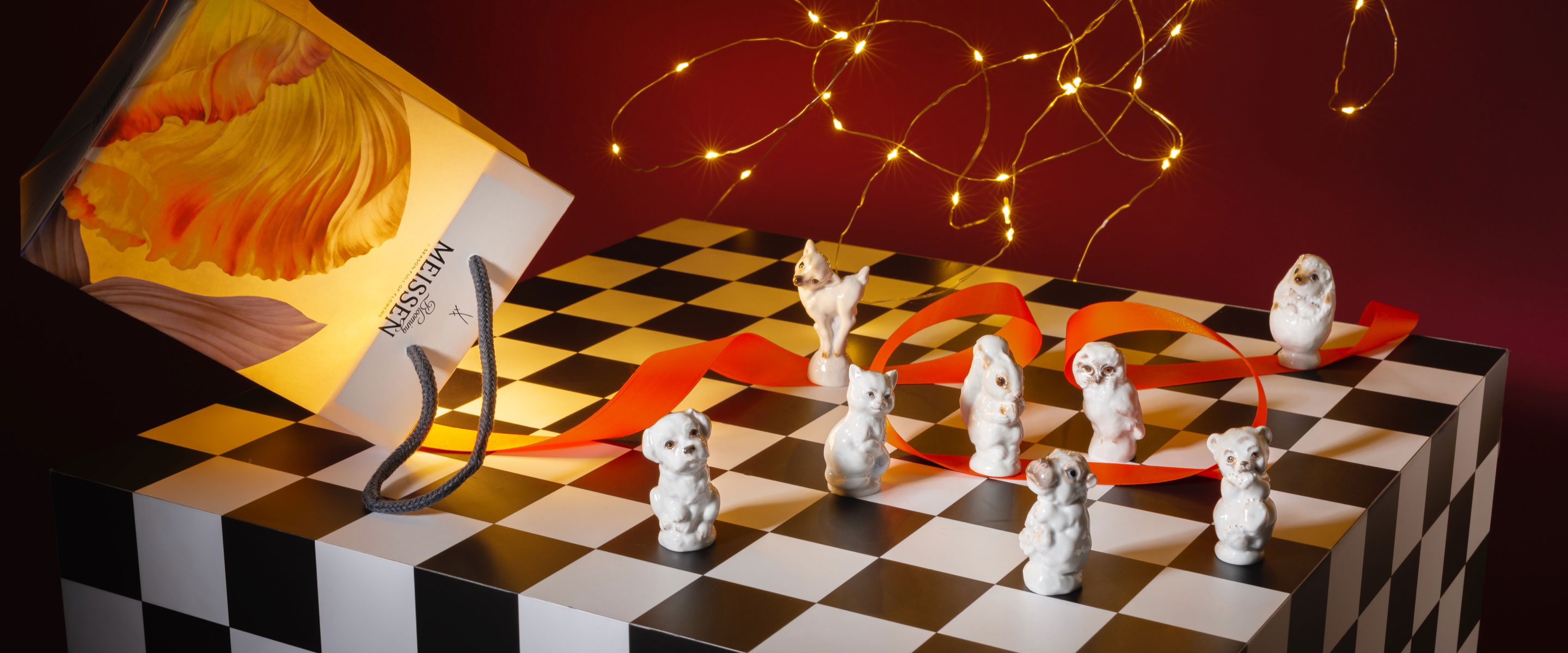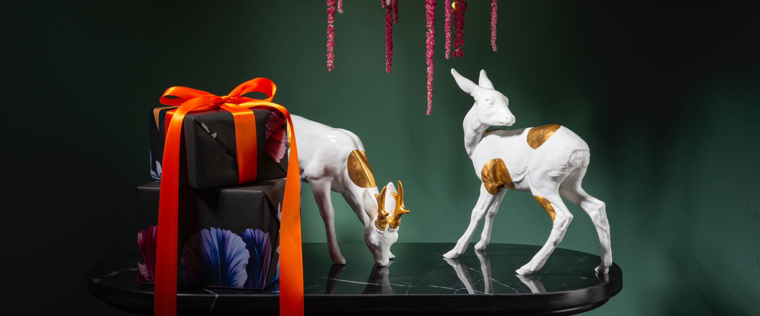 MEISSEN has dedicated its own figurine collection to the deer, consisting of roe deer, fawn and roebuck . They are available either white glazed and decorated with noble large gold dots, or made of Böttgersteinzeug. Whether you decorate the graceful animals individually or in a group: they are a very special, glamorous eye-catcher for your home and will definitely bring Christmas spirit into your house.