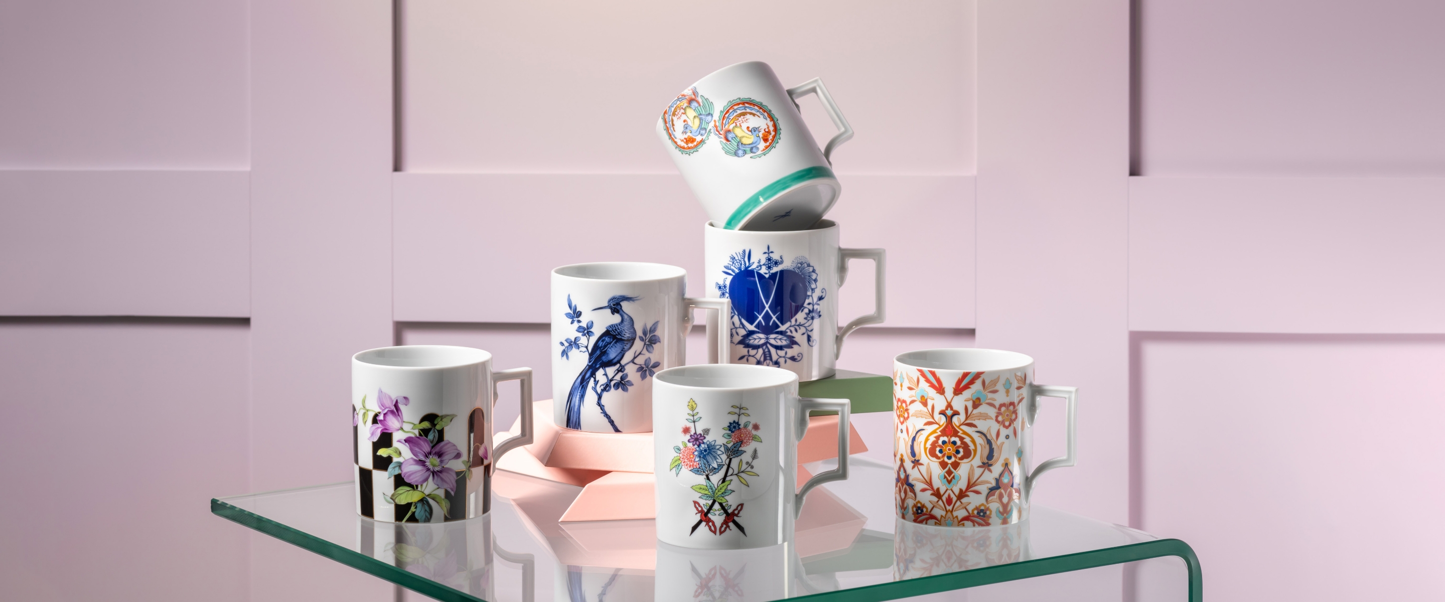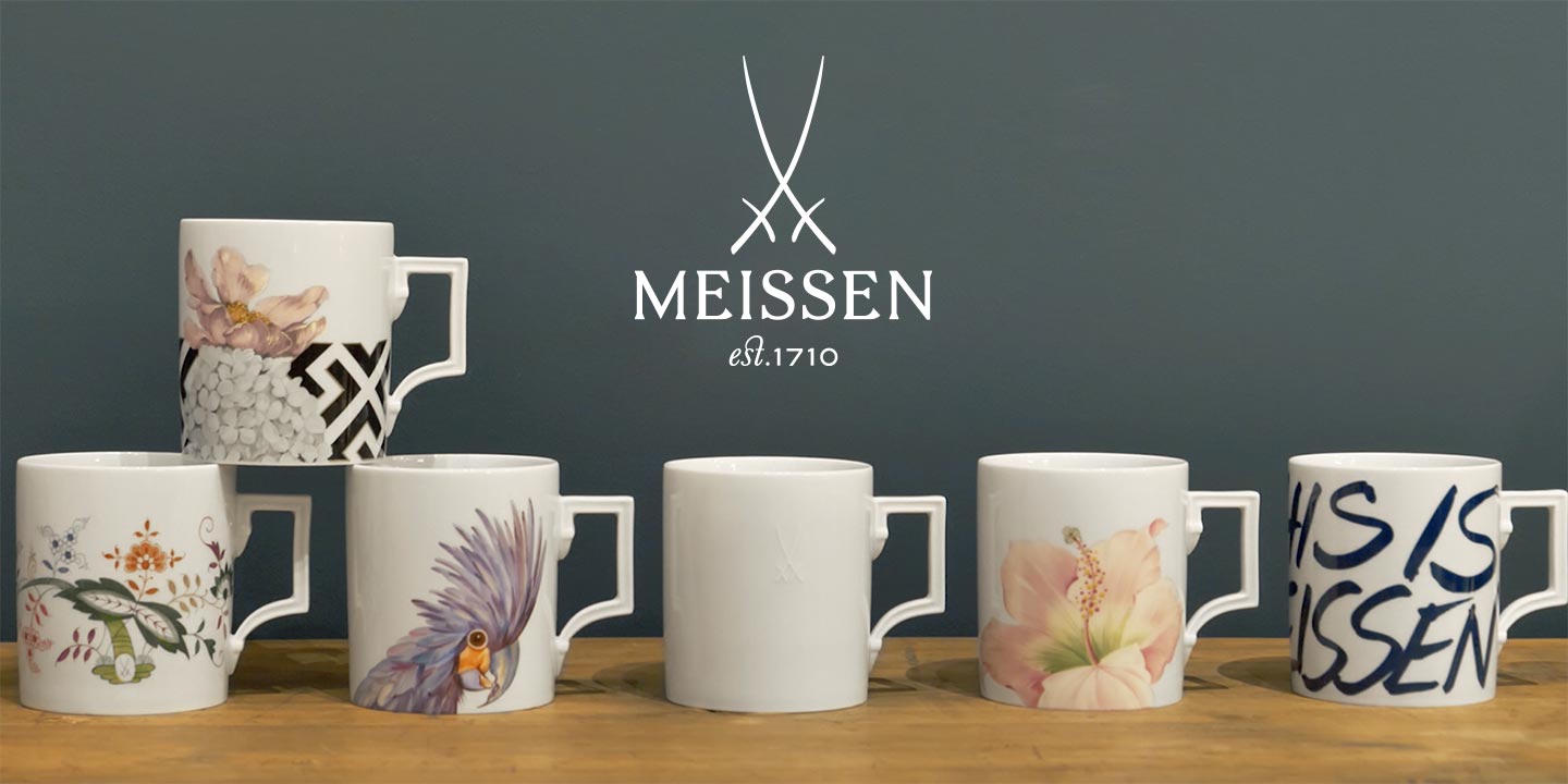 Applied to the glazed porcelain, the onglaze painting unfolds its luminosity in the subsequent decorative firing. Meissen painters specialise in a sub-area of the rich decorative palette. Over the centuries, numerous stylistic worlds have developed - the variety is almost limitless. So the selection of decorated mugs is also large, from hand-painted decors such as the "Giant Bloom" or "Far & Fantasy" motifs to technical decors, every Meissen lover and newcomer will find the perfect mug. Whether for the home office, at the breakfast table or a small coffee break in the afternoon - with our lovingly crafted mugs you will spend unforgettable moments of pleasure.
