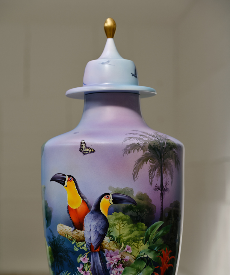 Discover ProductsHowever, it is not only the pollution caused by plastic waste that is a burden on our environment, but also the CO2 footprint that every human being leaves behind and thus contributes to global warming. These CO2 emissions can be absorbed, for example by the green lungs of our planet - the Amazon rainforest. This is home to numerous animal and plant species, but is threatened as never before by deforestation, forest fires and climate change. For this reason, MEISSEN has decided to draw attention to the threat to this paradise and the endangered animal species with The MEISSEN Amazon Collection under the motto “Make the world a better place”. In order to provide protection for the region at the same time, MEISSEN is cooperating with EKOSFERA as part of this collection, which is committed to preserving this ecosystem through various projects. With every purchase of a MEISSEN Mug Amazon, a donation is made to projects that support the preservation of the rainforest. In this way, the CO2 footprint of the average European is offset for three months. Depicted in intense colors and a naturalistic painting style, the mugs in this collection show endangered animal and plant species of the Amazon. A gift that not only brings joy, but also does something for the environment.
