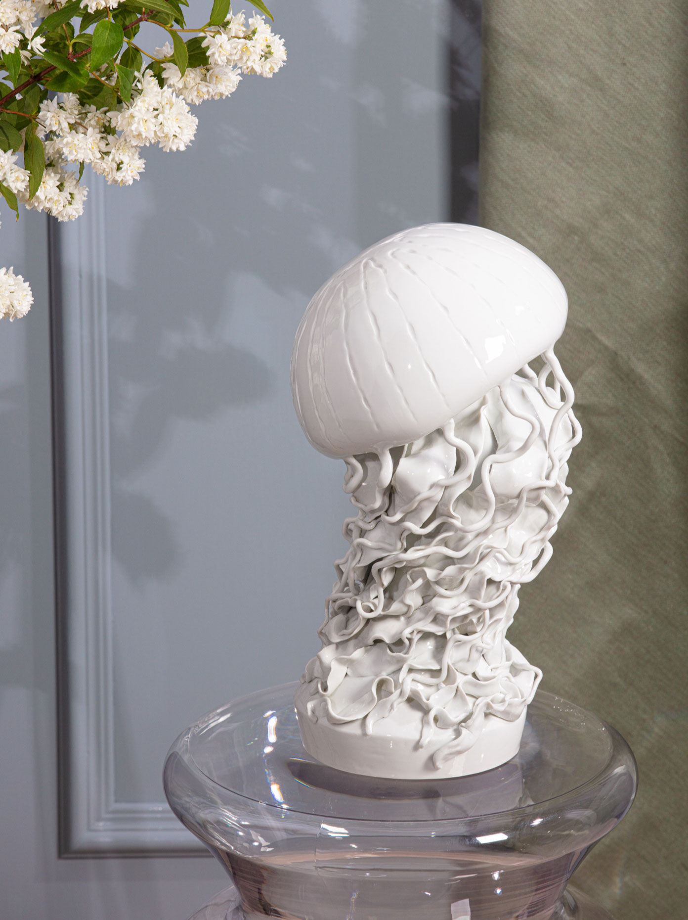Our vases and vide-poches with enchanting motifs of oceanic fauna exude a magical vacation feeling and remind us of the incomparable beauty of seascapes. In combination with the radiant splendor of the porcelain surface, they will add a touch of elegance and delicate grace to your interior. To complete the maritime look, you can perfectly complement them with accessories such as beach chairs, shells, driftwood and sailboats.