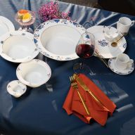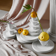Dessert bowls unfold their full effect when they are part of a carefully composed setting. A soft scoop or a slice of tart rests securely in the hand while matching dessert plates create a second porcelain frame beneath. Around the center of the table porcelain bowls in different sizes echo the same lines, so that every course feels related. When a cake or a selection of fruit is shared, elegant platters carry the main piece while each guest has a personal place set with dessert bowls in smaller or more generous sizes, ready to receive a portion. The same language continues through the rest of the service. Small dessert pieces can appear alongside dedicated items for sauces or toppings, while large bowls take over when you serve fruit for the whole table or a layered trifle. For an effortless start, you can choose coordinated bowl sets that bring together several sizes at once. Those who prefer a complete arrangement will find tableware sets that unite plates, bowls and cups in one consistent design. Fine tableware accessories such as small trays, candleholders or decorative pieces link these elements, so that each piece sits within a coherent landscape rather than standing alone.